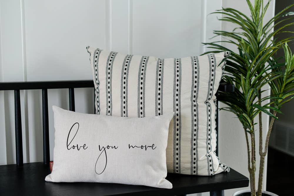 This 12x18 love you more throw pillow is high quality, super cozy, and made with care; it's a nice gift for Mother's Day! Our linen + polyester blend pillow cover features an invisible zipper and professionally serged interior seams. All designs are printed and designed by Melissa of 521handmade in her studio. Pillows are packaged individually in clear plastic to keep clean during transit.
