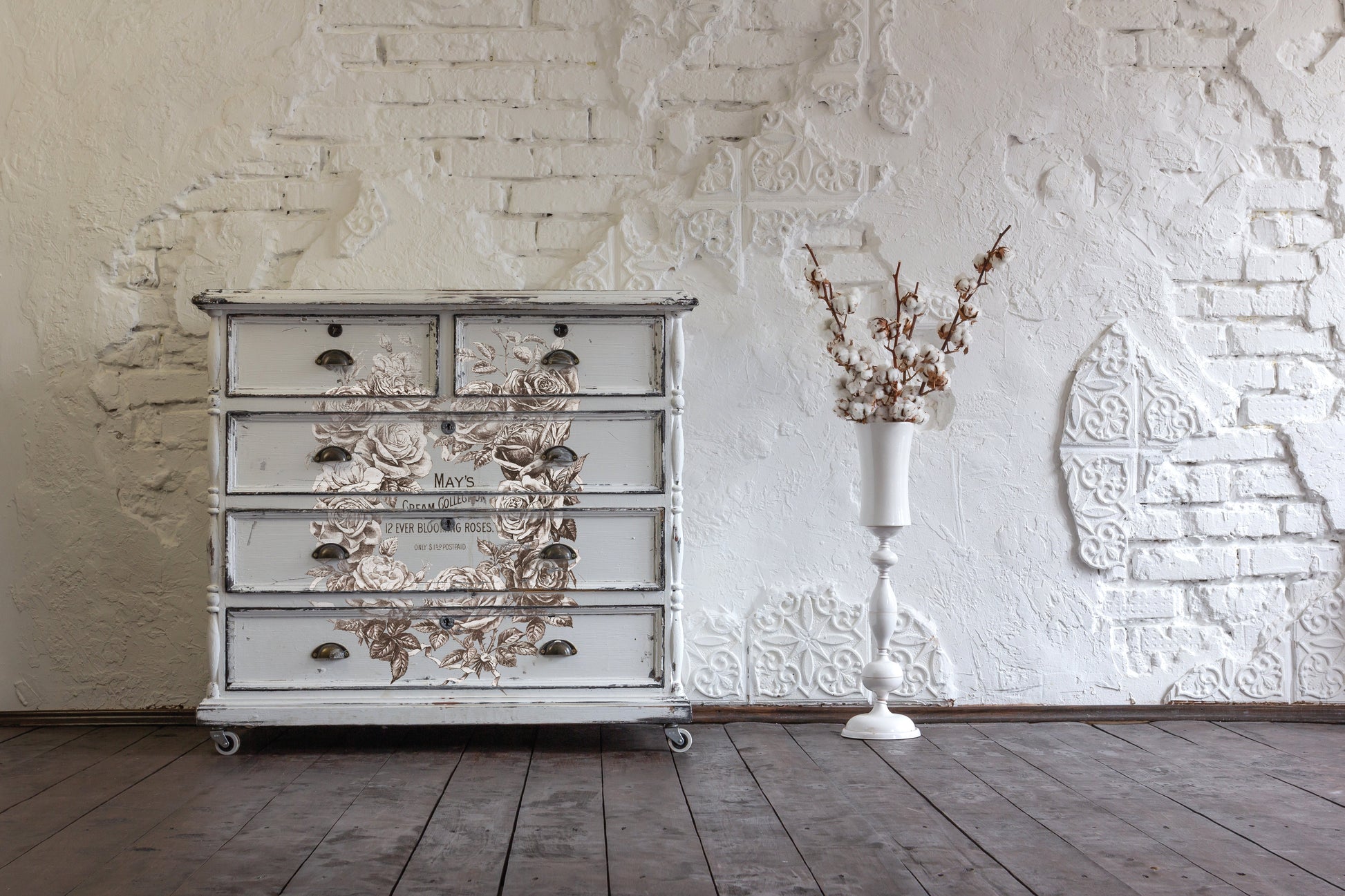 May’s Roses 4 page IOD Iron Orchid Designs rub on decor transfer will become a favorite. Each sheet is 16 x 12, part of our Summer 2023 release. This will be a beautiful addition to bright and light color alike.