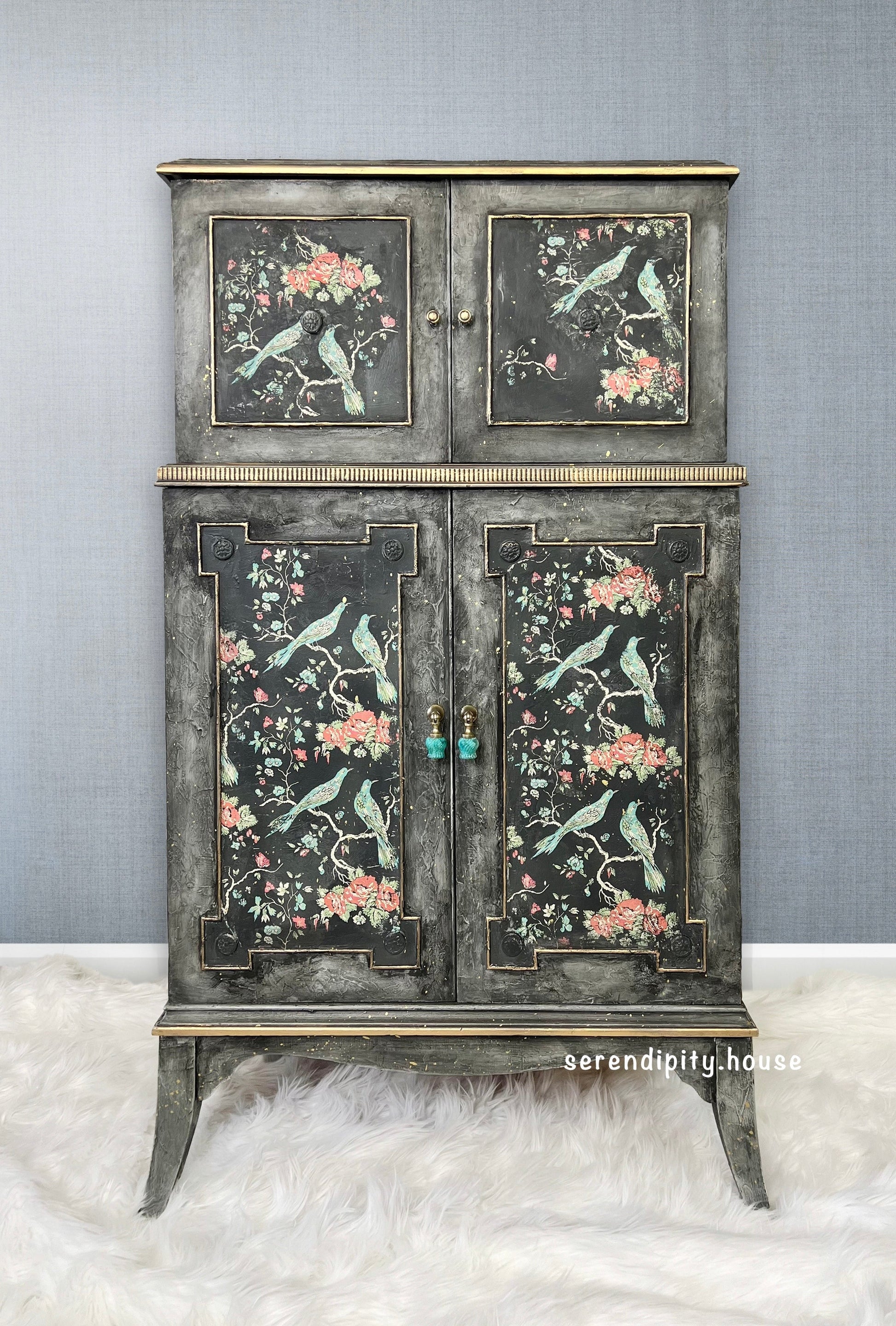 Paradise Paint Inlay by IOD Iron Orchid Designs, Beautiful charcoal, red and green pigment design with birds, vines, florals.