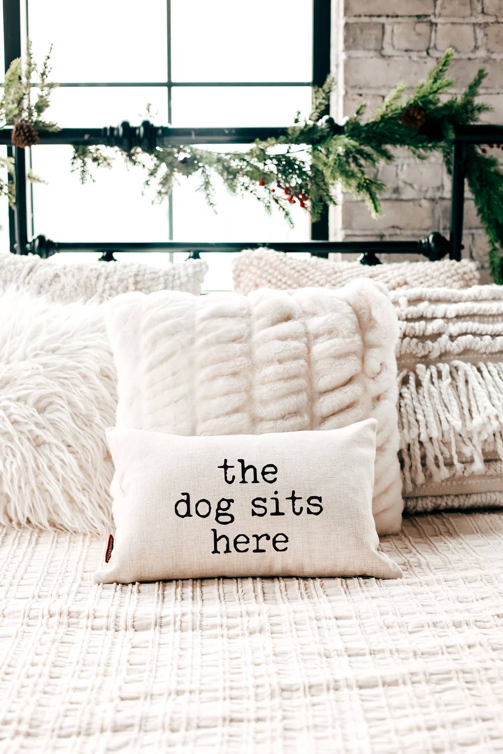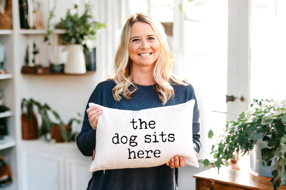 The perfect gift for dog mamas is here! This 12x18 "the dog sits here" throw pillow is high quality, super cozy, and made with care by a crafty mama in the USA.